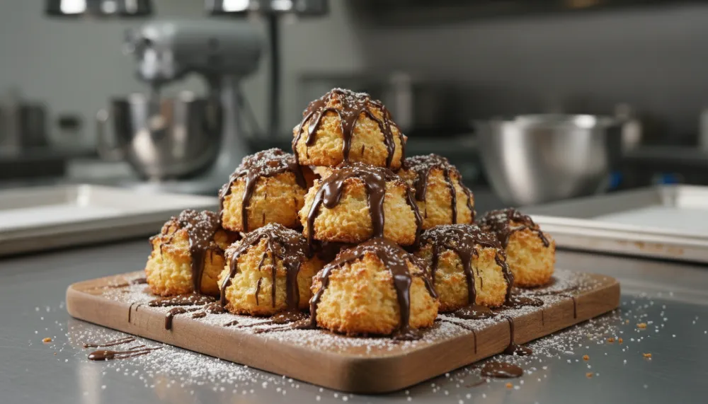 These chewy, golden-brown Coconut Macaroons with Chocolate Drizzle are the perfect blend of toasted coconut and rich dark chocolate. Simple to make yet elegantly decadent, they are a timeless treat for any occasion.