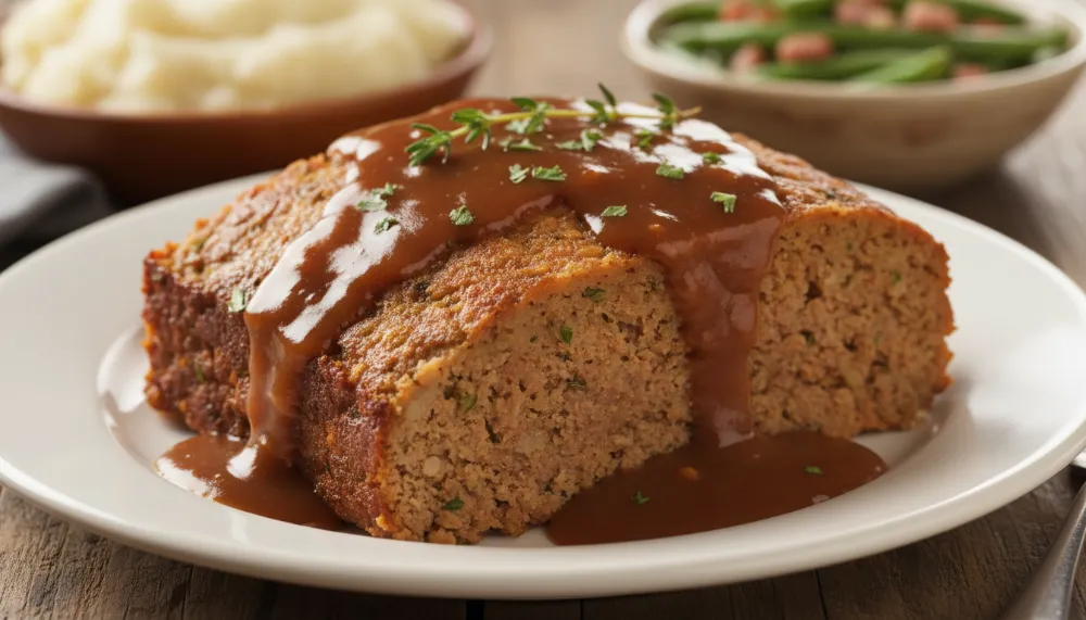 In many regions, meatloaf is served with a tomato-based glaze. However, the true Southern way involves a rich, mahogany brown gravy. To keep this recipe alcohol-free, we skip the traditional deglazing with wine and instead use a teaspoon of apple cider vinegar. This acidity cuts through the richness of the beef broth and butter, providing the necessary “brightness” that makes the gravy feel light rather than heavy. This gravy is the soul of the dish, transforming a simple meatloaf into a sophisticated meal.