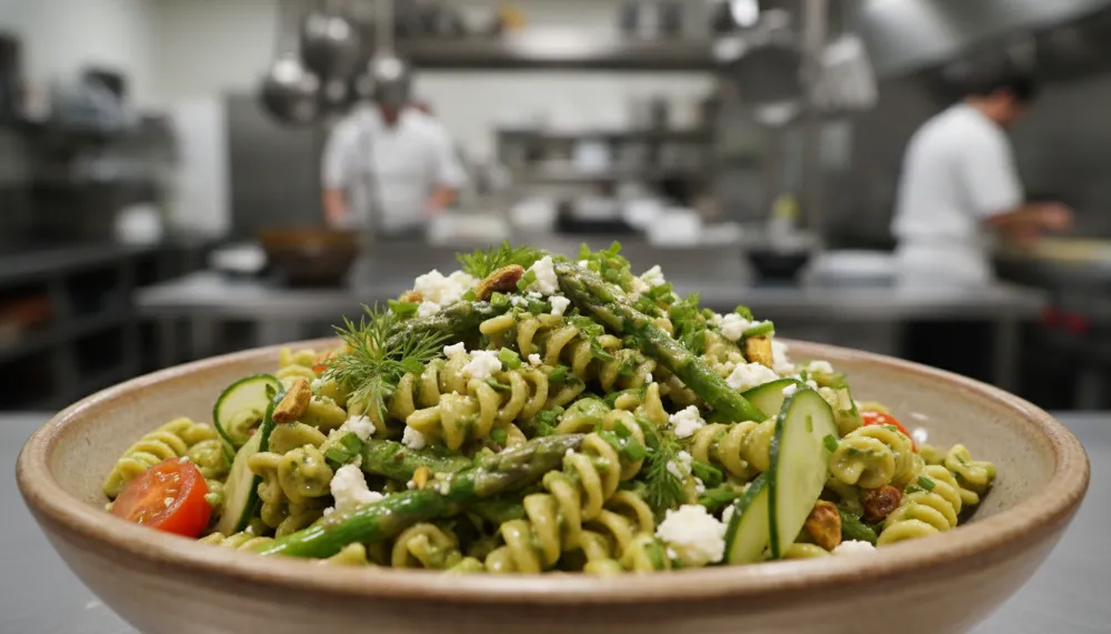 The green goddess pasta salad is a modern, carbohydrate-rich adaptation of the classic 1920s American dressing. Known for its vibrant color and herb-forward flavor, it has evolved from a simple salad topping into a versatile main or side dish often featuring seasonal vegetables and varied proteins. The identity of this dish was born in 1923 at the Palace Hotel in San Francisco. Executive Chef Philip Roemer created the original dressing to honor actor George Arliss, who was staying at the hotel while starring in the popular play “The Green Goddess.”