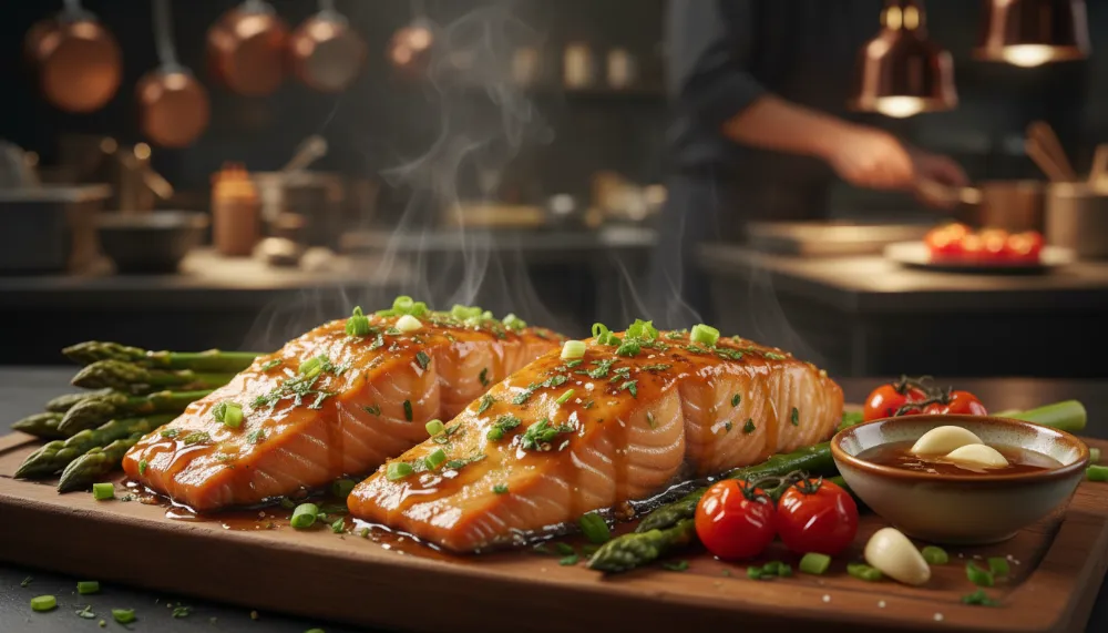 The modern Honey Garlic Sauce found its footing in the mid-20th century, primarily within Canadian-Chinese and Chinese-American fusion kitchens. It evolved from traditional Cantonese sweet-and-sour profiles, moving away from heavy vinegars toward a thicker, honey-based glaze that offered a more luxurious mouthfeel. While honey-garlic glazes were originally popular for chicken and beef dishes, the technique was adapted for salmon in the late 20th century as North American diners sought healthier, heart-healthy alternatives to red meat. Salmon, a historical staple for Indigenous communities in the North Pacific and Atlantic regions, provided a rich, fatty canvas that perfectly balanced the sharp pungency of garlic and the floral sweetness of honey.