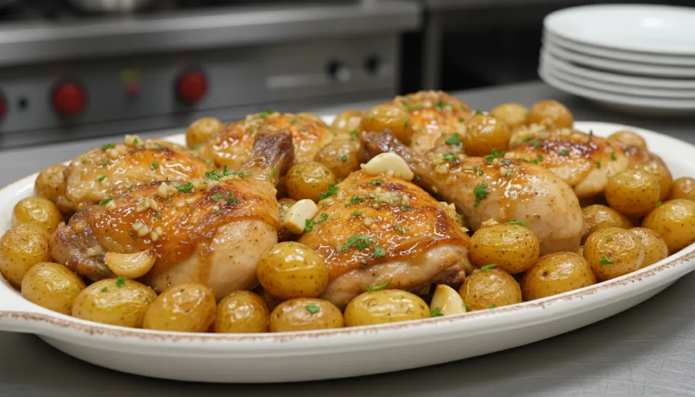 Searing juicy chicken thighs in a rich, golden garlic butter sauce alongside crispy roasted potatoes creates the ultimate comfort meal that satisfies every single craving. This one-pan wonder delivers restaurant-quality flavors with minimal cleanup, making it the perfect weeknight victory for any home chef.